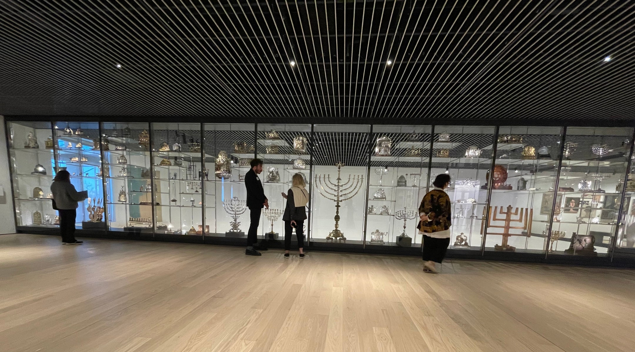 Le Musée juif possède plus de 1 400 menorahs de Hanoukka dans sa collection et, dans le cadre de son nouveau centre d’apprentissage situé au quatrième étage, plus de 130 sont exposées dans un espace ouvert sur une galerie à double hauteur au troisième étage.