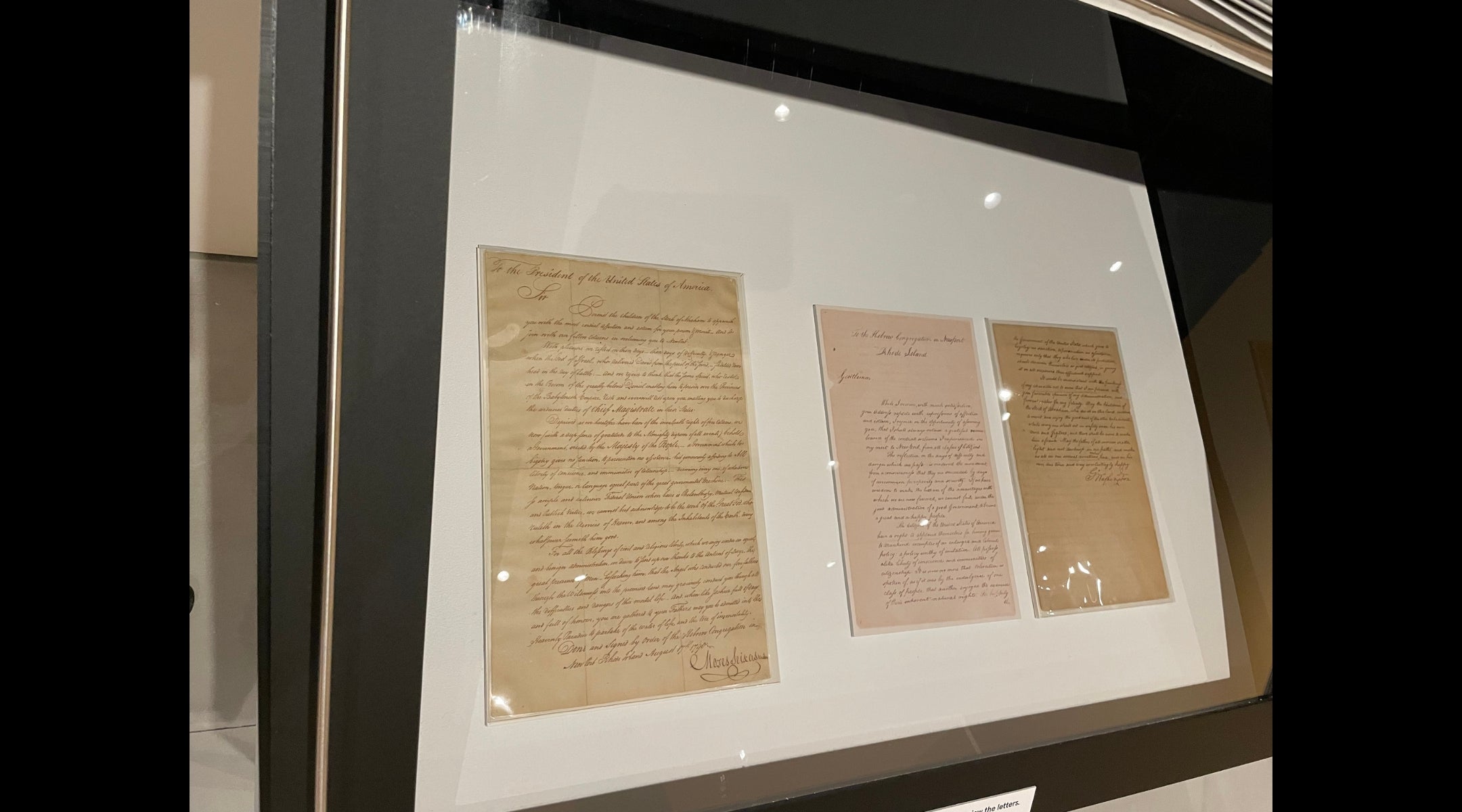 Un échange de lettres entre le président de la synagogue Touro, Moses Seixas, et le président américain George Washington. (Jackie Hajdenberg)