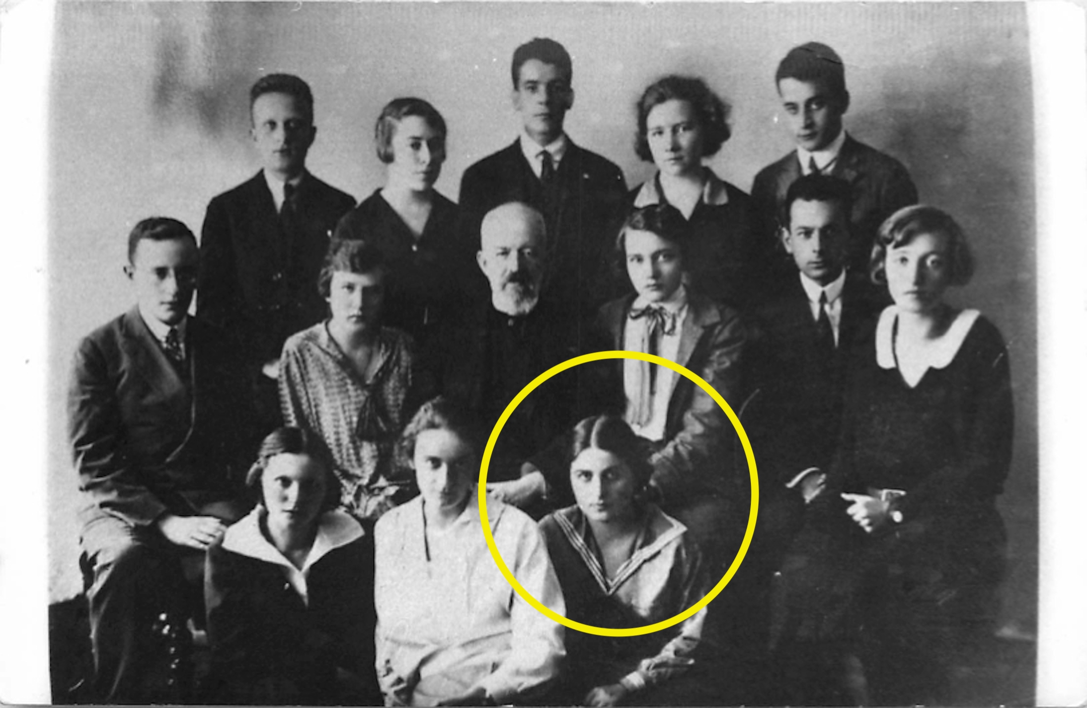 Janina Mehlberg pose avec ses camarades de Kazimierz Twardowski à l’Université Jan Kazimierz de Lwów, 1925 ou 1926. (Autorisation de Jan Woleński)